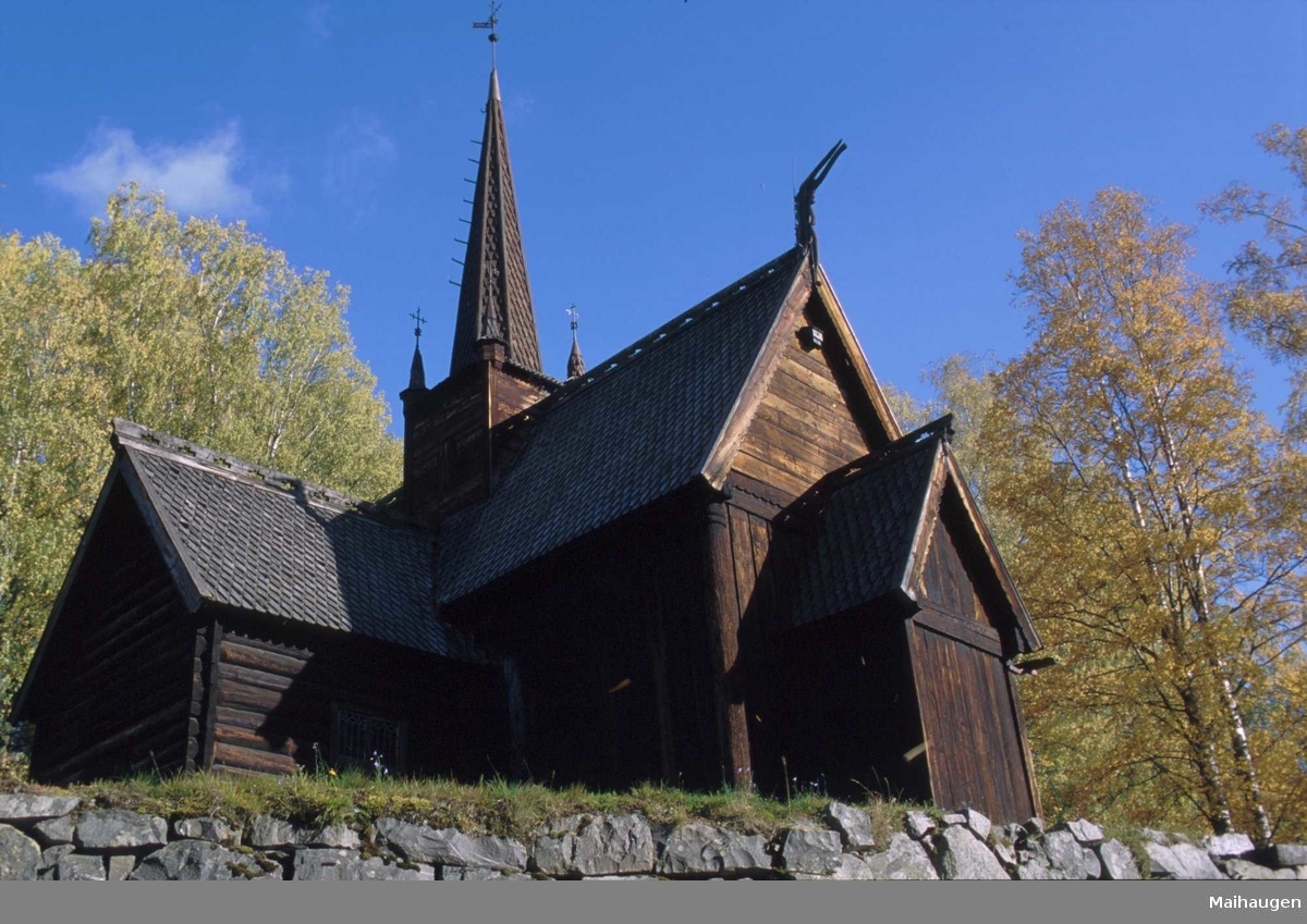 Kirken er en middelalderkirke i tre som ble oppført på 1200-tallet. Den ble tatt ned i 1880 og solgt på auksjon, og gjenoppført på Maihaugen på Lillehammer i 1921 hvor den står den dag i dag.