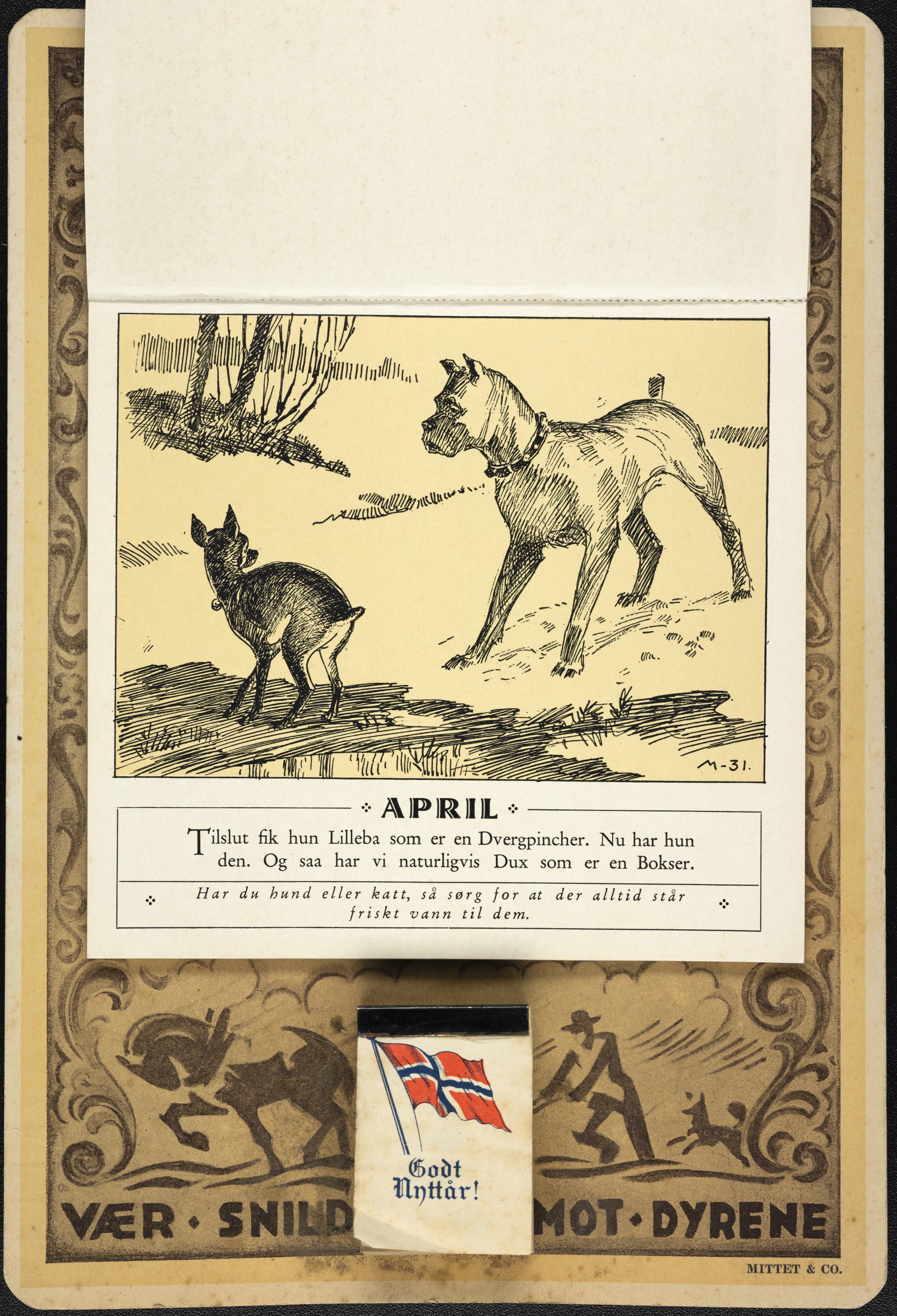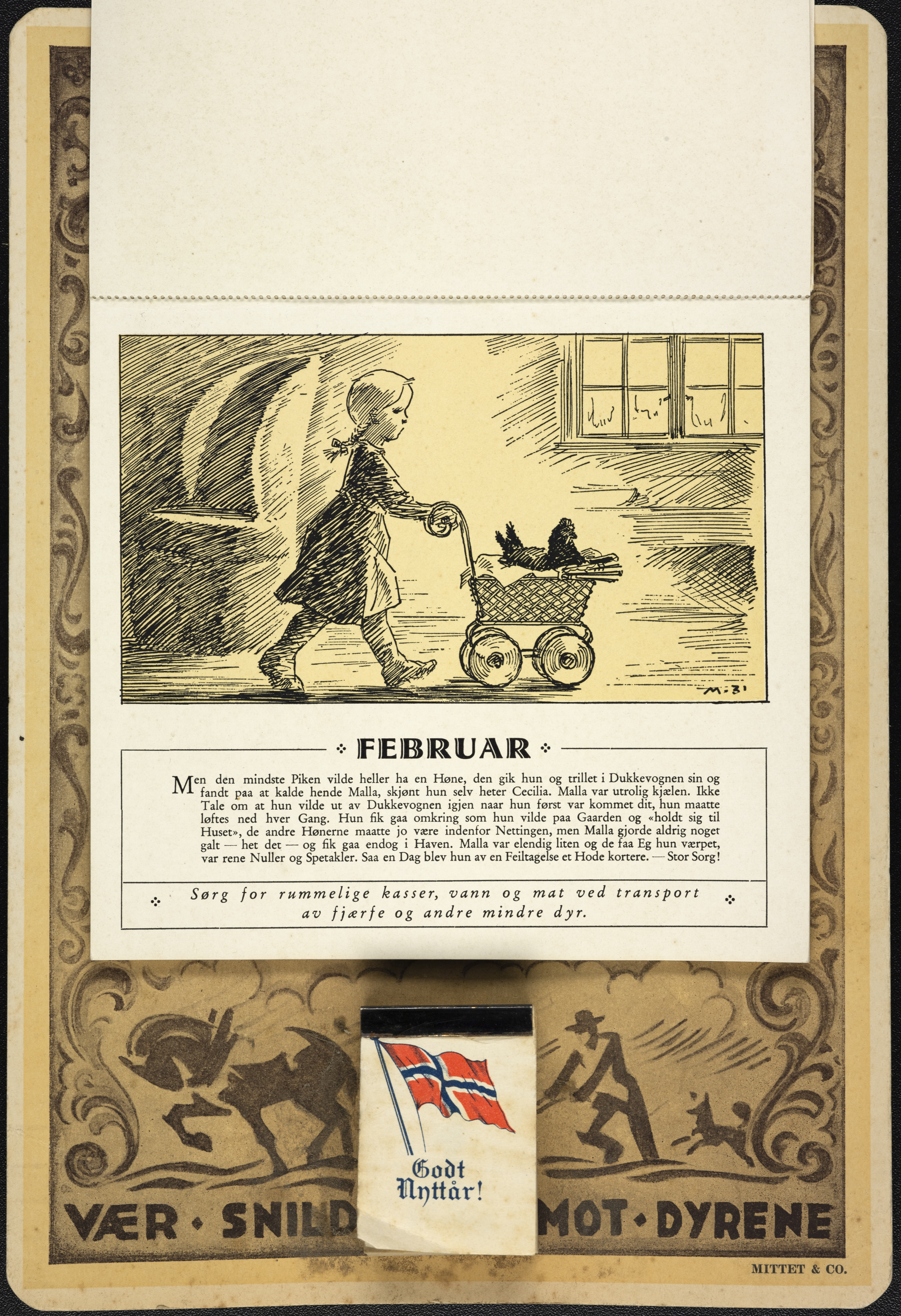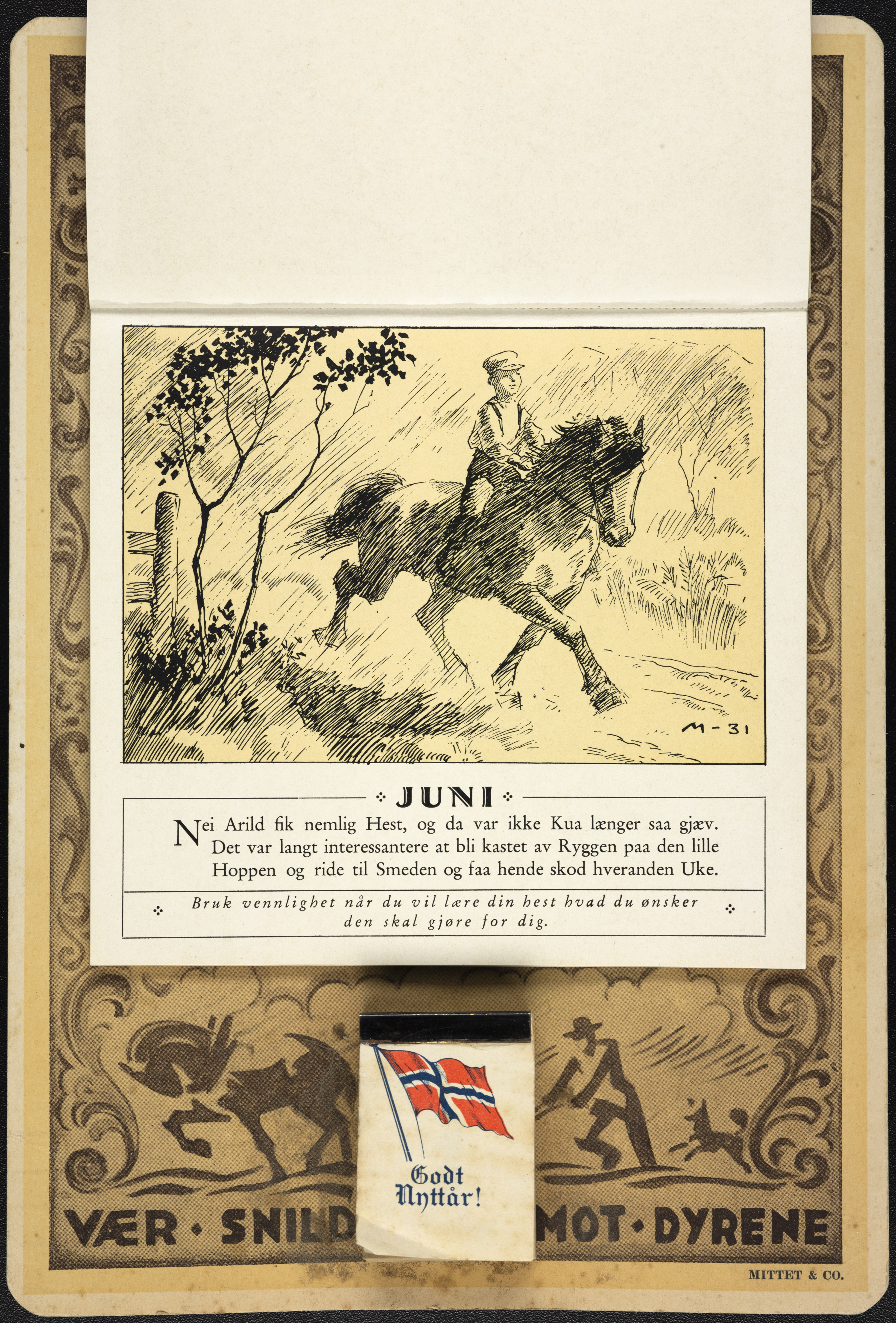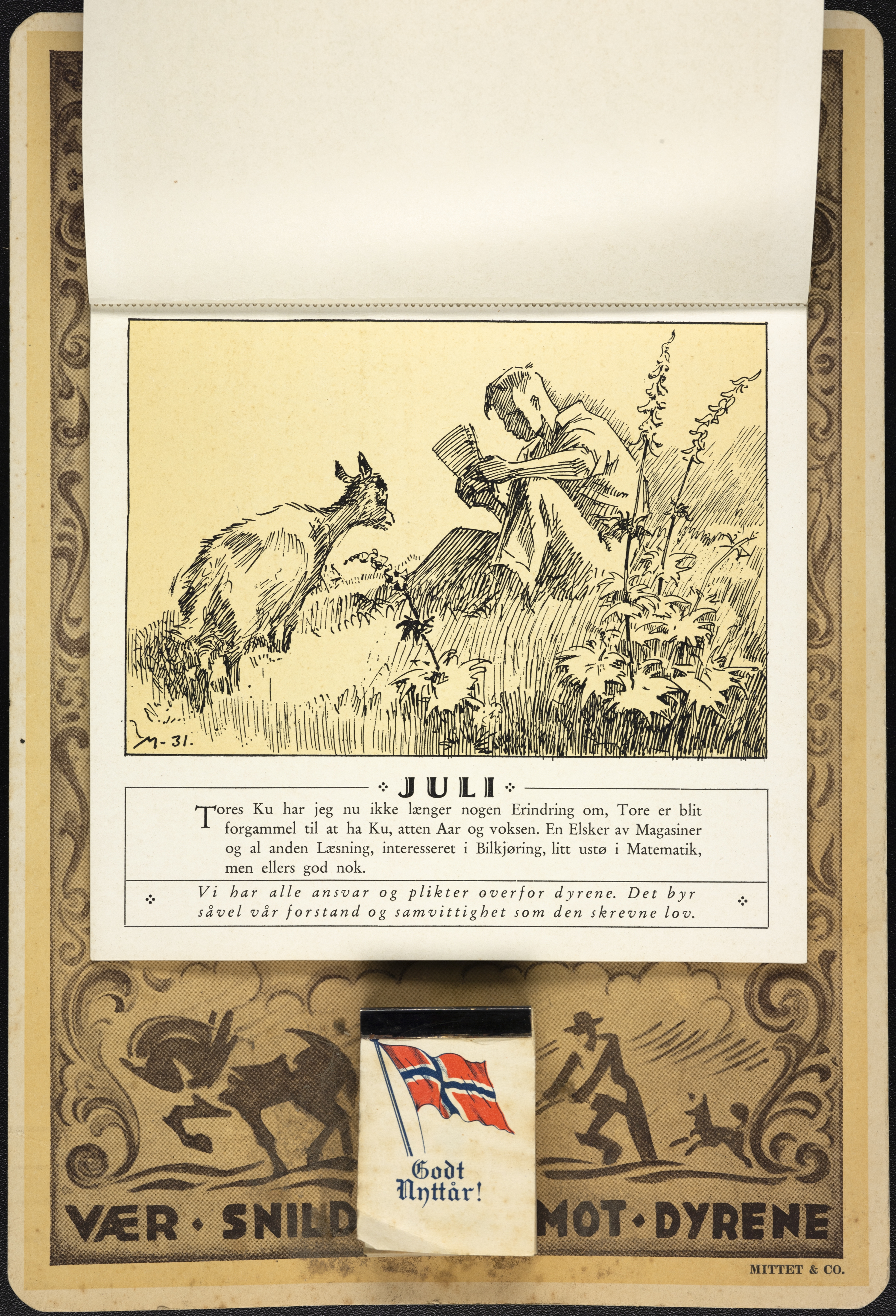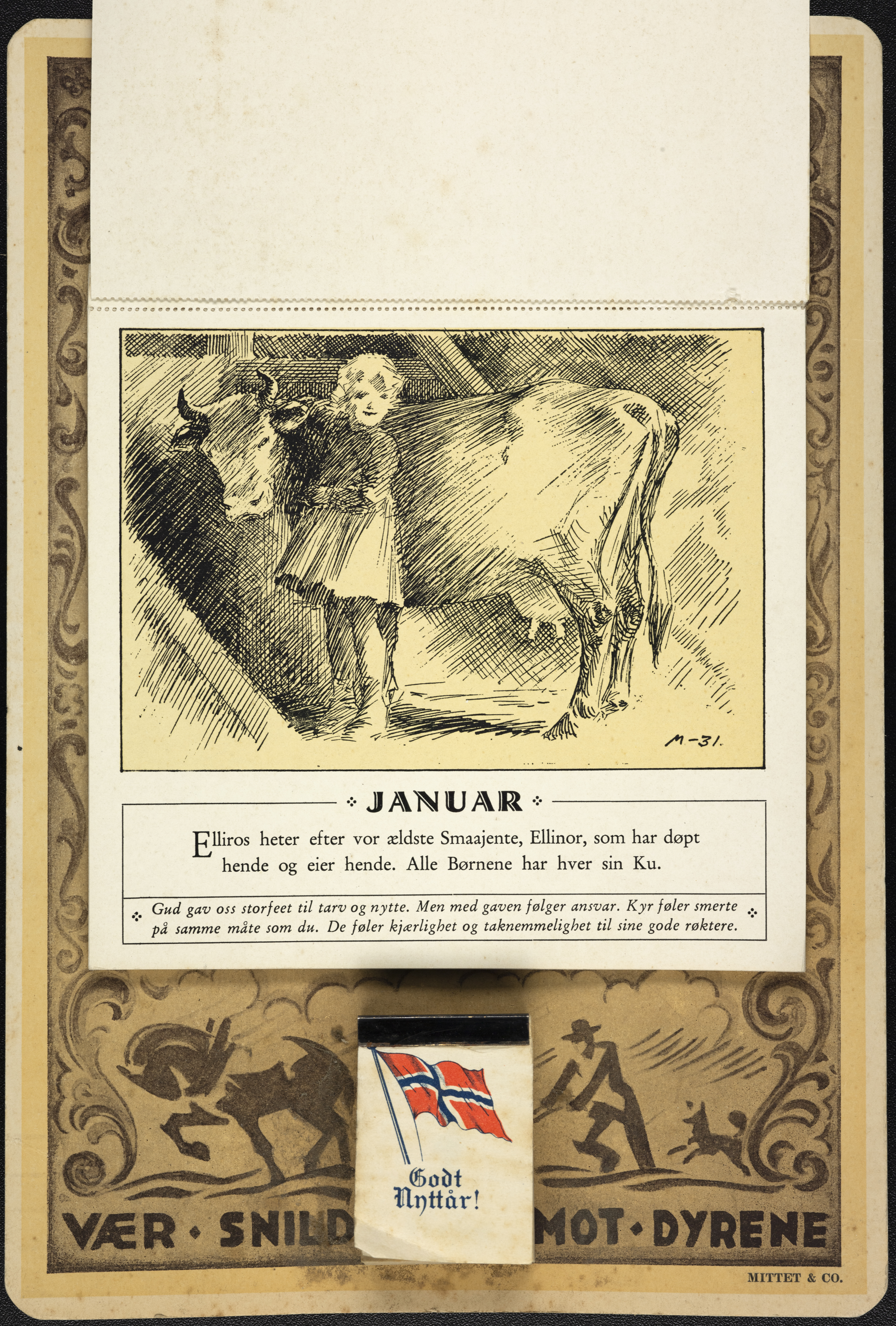 Under følger teksten som sto på kalenderens ulike måneder, rikt illustrert av tegneserietegneren Ivar Mauritz-Hansen.