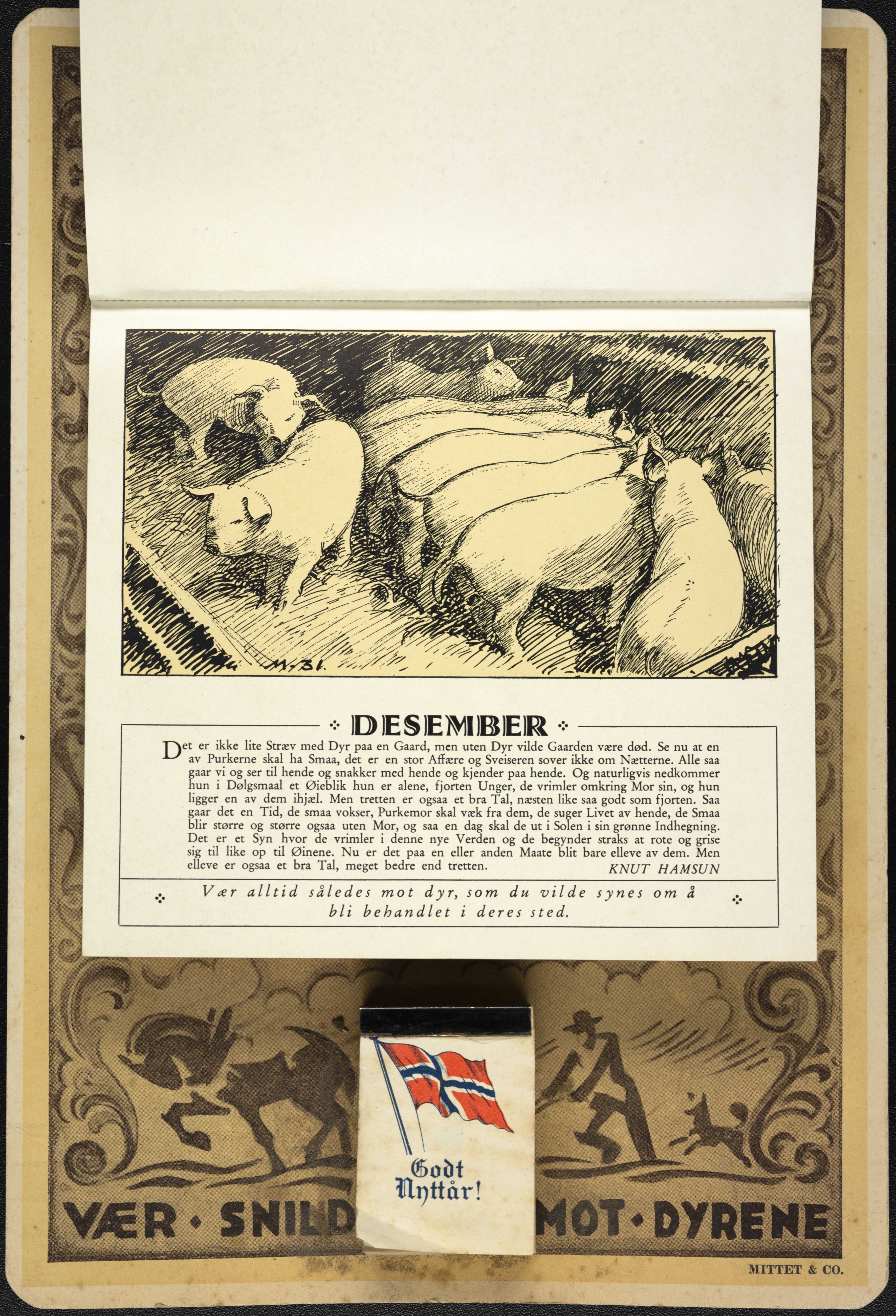 I 1931 fikk Knut Hamsun en forespørsel fra Norges Dyrebeskyttelsesforbund; kunne han tenke seg å skrive tekst til neste års kalender? Hamsun takket ja, og brukte sitt nærmiljø på Nørholm som inspirasjon.