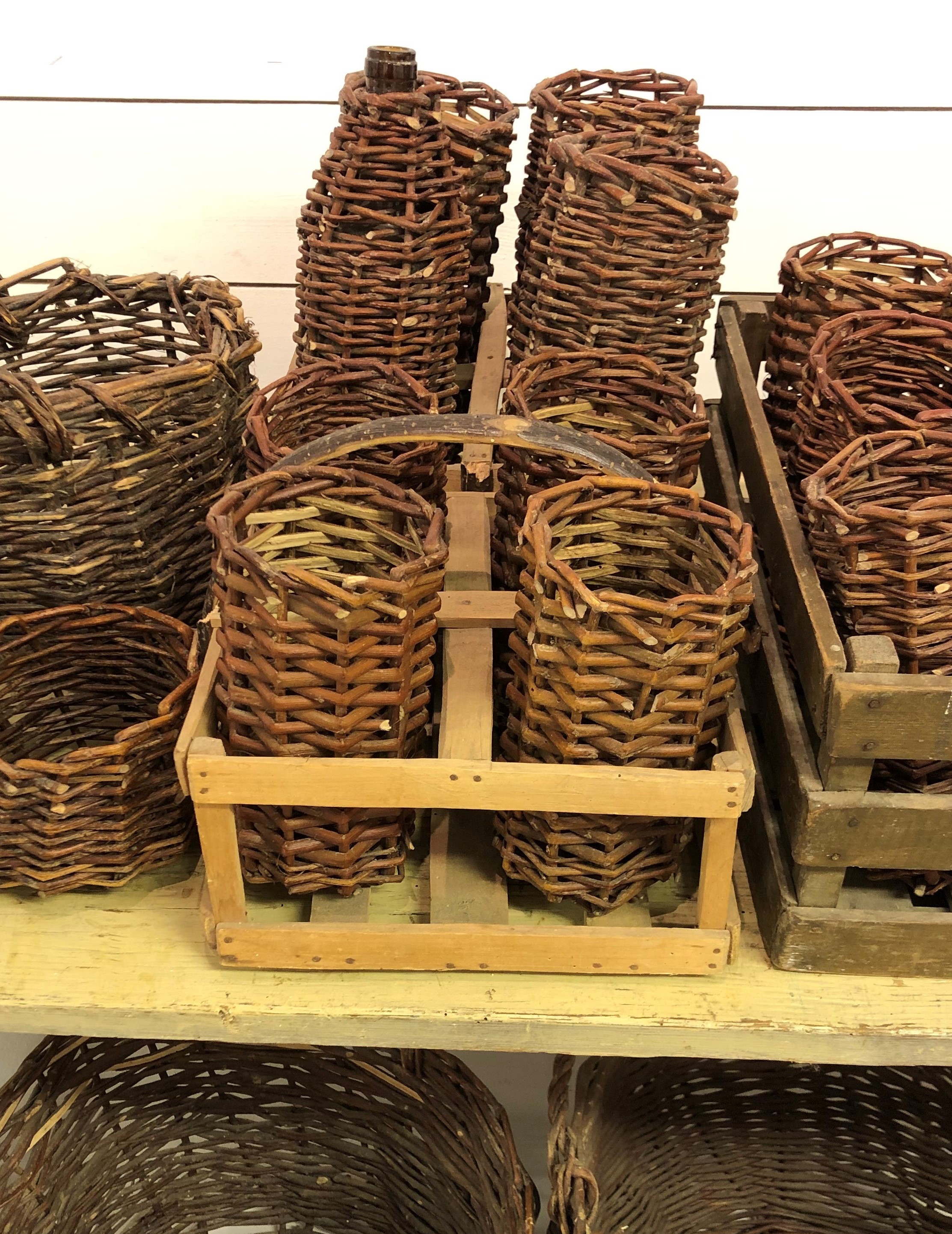 Kurvene av flettet pil er noen få av flere tusen som Ivar Beisland (1855-1922) på Berge gård fikk laget til høsting og omsetning av jordbær.