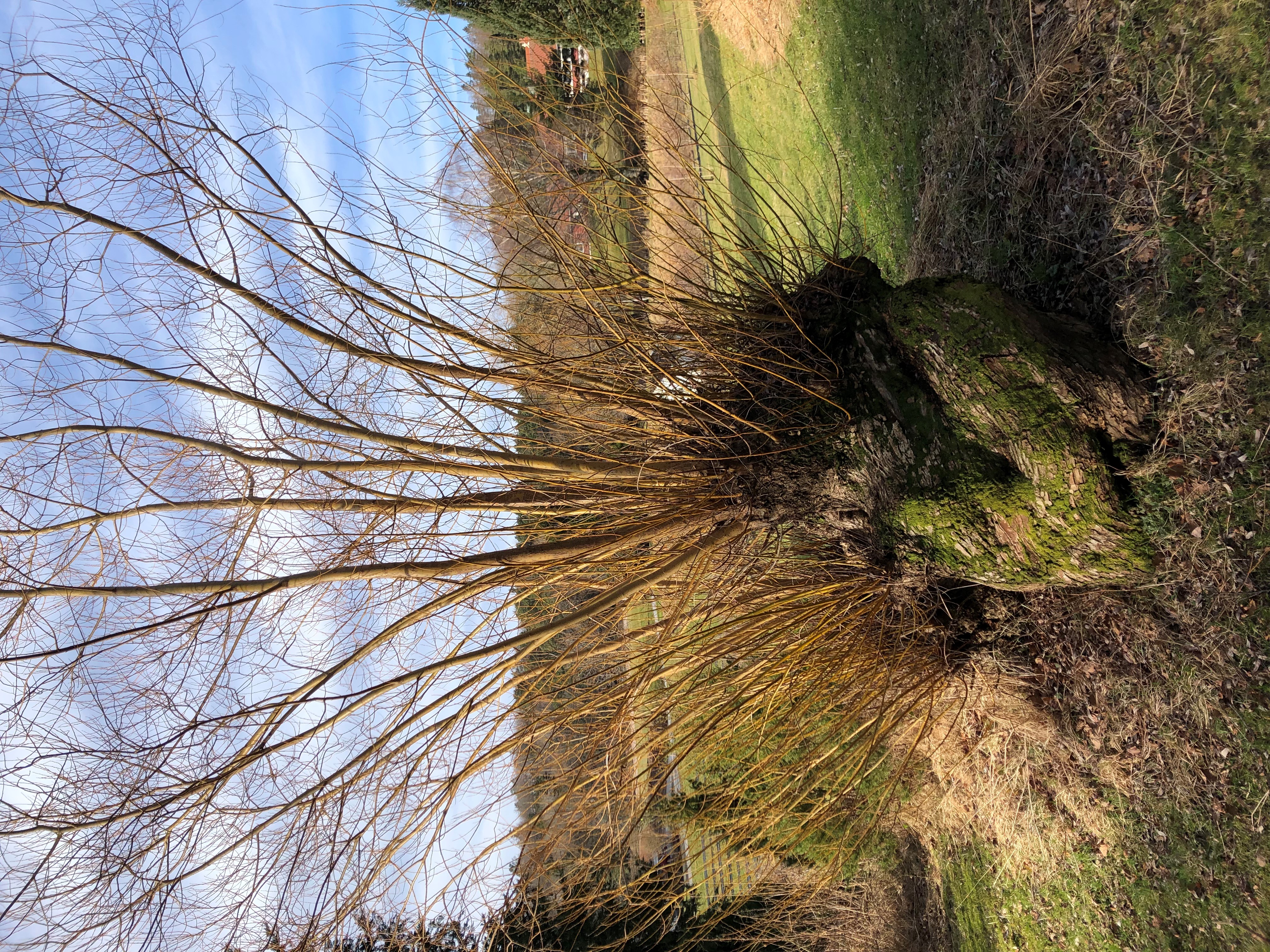 Nye skudd på en gammel stubbe i parken på Dømmesmoen. Den ble kalt kurvpil eller gullpil, og ble brukt til å flette kurver. Lange tynne kvister ble skåret på vinteren, tørket, for så å bløtlegges noen dager før de ble tatt i bruk til fletting.